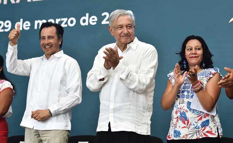 “Por eso también me da muchísimo gusto el que aquí, en Veracruz, gobierne Cuitláhuac García, un hombre honesto, con convicciones”.