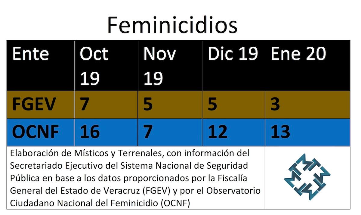 La OCNF en octubre de 2019 anotó, tan sólo por los casos conocidos en prensa, 16 muertes violentas de mujeres en Veracruz, en contraste con los 7 feminicidios que reportó la Fiscalía.