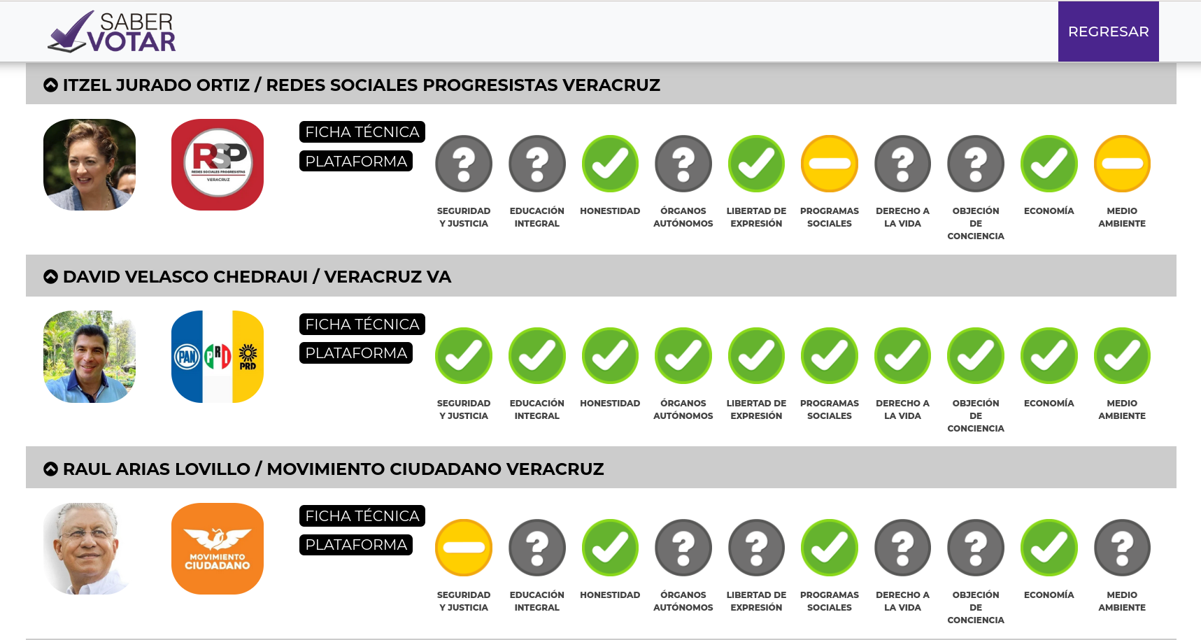Si usted quiere consultar la página y revisar a algún candidato en particular, lo puede hacer en https://www.sabervotar.mx/