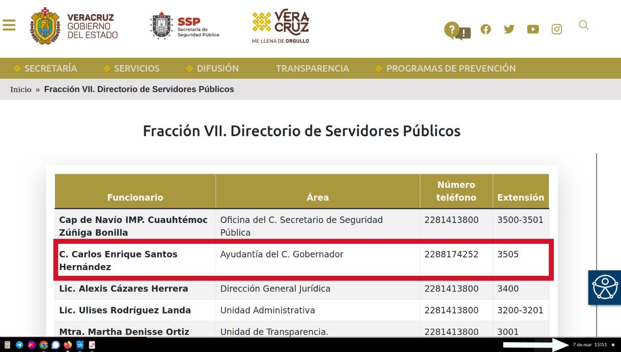Porque en el directorio de la Secretaría de Seguridad Pública (SSP), hasta este martes 7 de marzo en la tarde -casi dos meses después- seguía apareciendo en el puesto,
