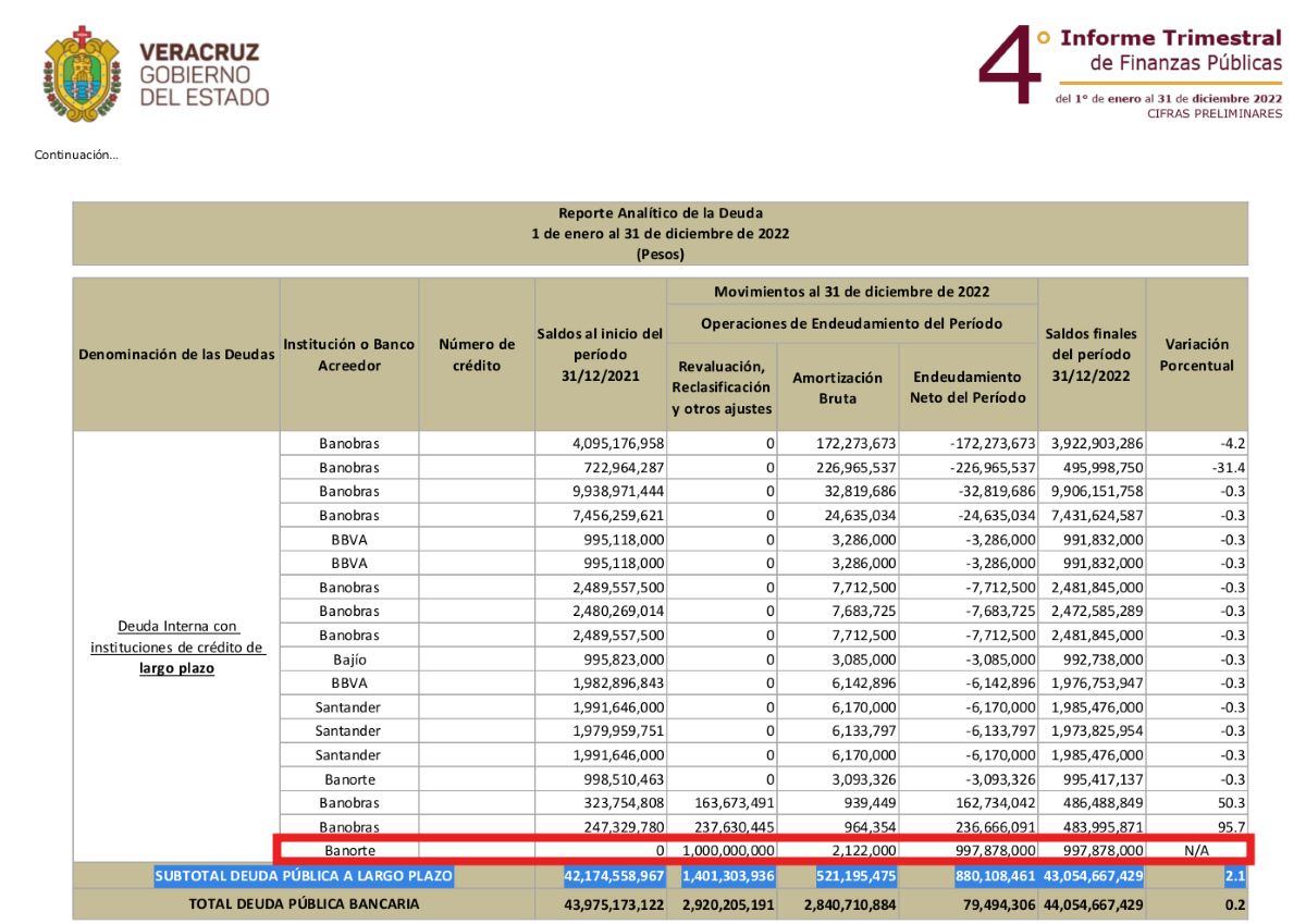 Como sea, con mentiras o no, hoy Veracruz cierra el 2022 con la deuda bancaria anual de largo plazo más grande de su historia.
