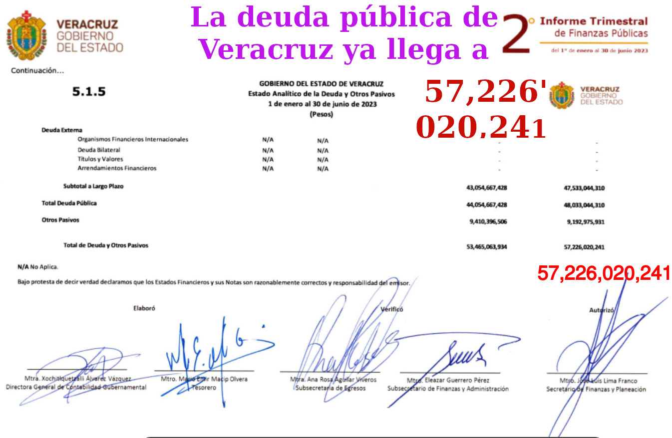 Pero también son 5 mil 678 millones 544 mil 306 pesos más, que el monto que dejó Miguel Ángel Yunes Linares al terminar su bienio.