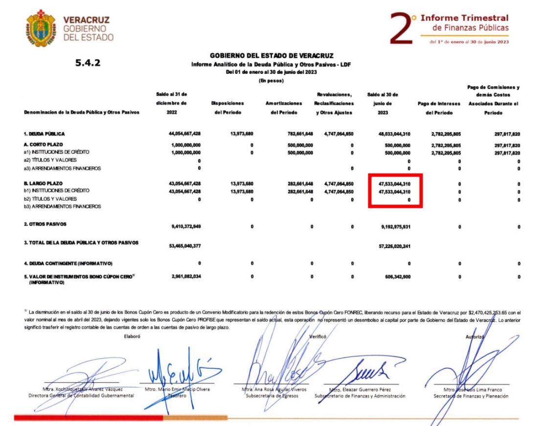 Ahora ya llega a los 47 mil 553 millones de pesos, según lo publicado en el “Segundo informe trimestral de finanza públicas” del 2023.
