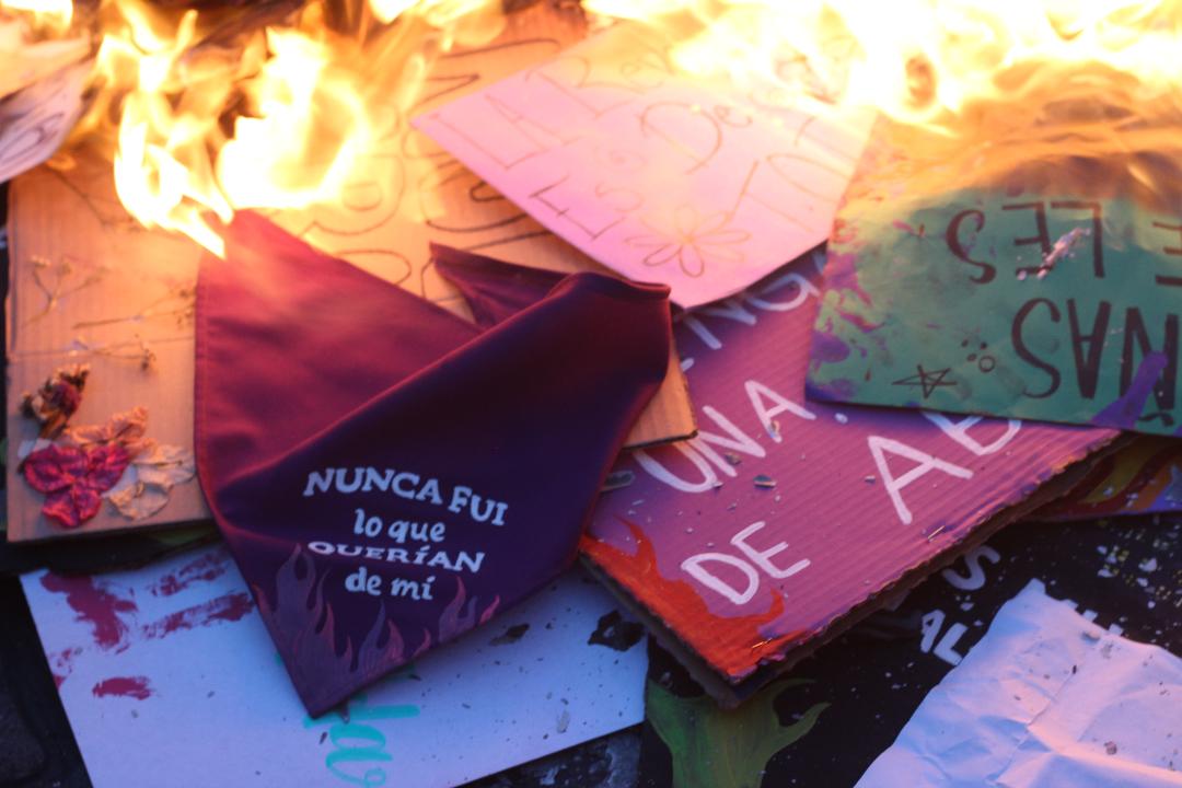 El punto de encuentro era el Teatro del Estado. Desde lejos ya se sentía la vibración de las voces, ese rumor colectivo que crece como una ola antes de romper. Había mujeres vendiendo pañuelos, pines, camisetas, stickers, carteles. El comercio feminista estaba vivo, latiendo entre consignas y risas. Confieso que quería comprarlo todo, pero preferí detenerme a leer las cartulinas escritas con plumón tembloroso de rabia.