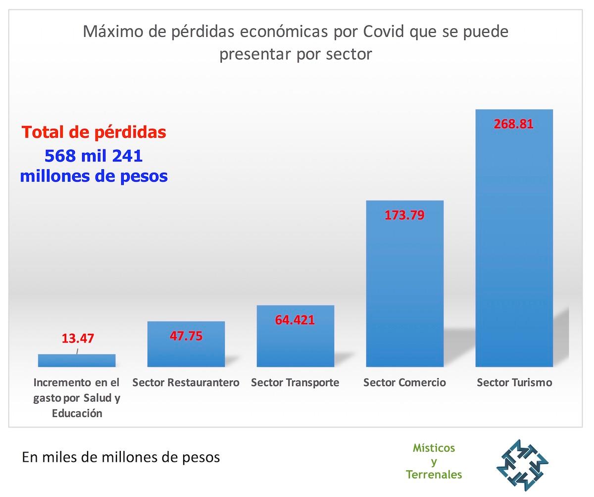 El estudio anota que el calculo por las pérdidas económicas se hizo “considerando rangos de aumento en las pérdidas más agudos que lo que aconteció en la pandemia AH1N1 por una mayor exposición mediática y en redes sociales a información de la pandemia, así como medidas adoptadas por otros países”.