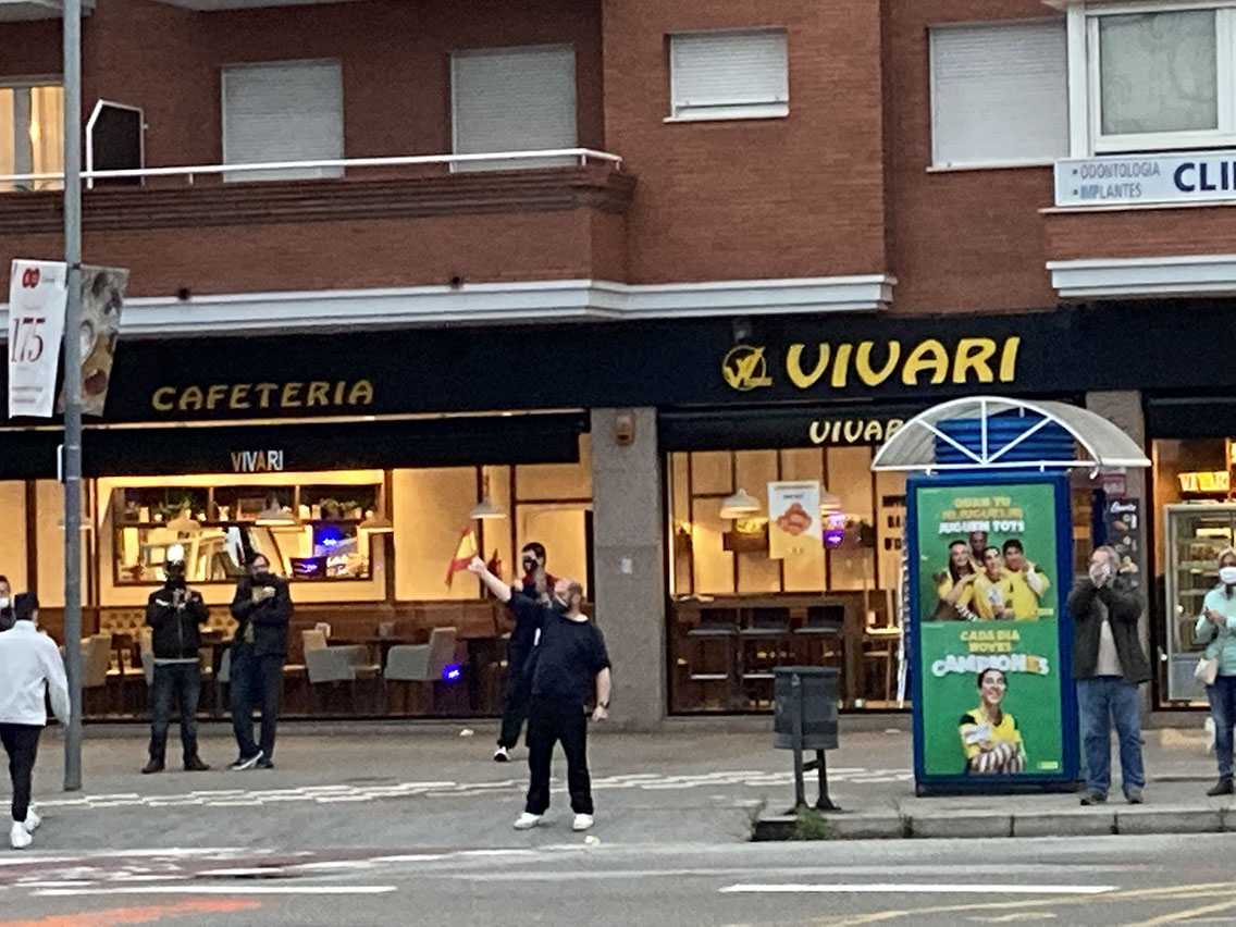 Y es el colmo que el conseller de interior autorice un tipo de manifestación destructiva y ofensiva, ya que al pasar sus pocos coches delante nuestro, ralentizan su marcha, casi parando, para irnos filmando, haciendo alarde de ‘su’ bandera, y diciéndonos por megafonía que ‘así aprendemos lo que es la democracia’.