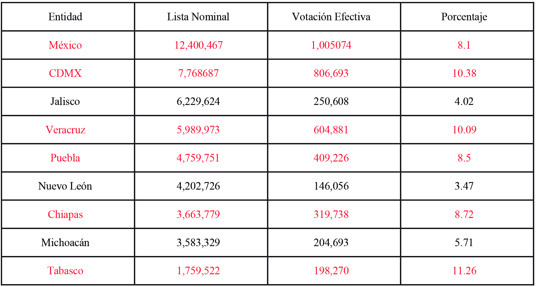 Basta analizar los estados con gobernadores y mayoría de alcaldes de la 4T, para contrastarlos con otros, bajo control de la oposición y verificar que el porcentaje de los sufragios se caen a la mitad, demasiado reiterado para ser casualidad. Aquí una muestra: