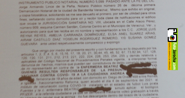 En un video, la enfermera Beatriz toma la jeringa, pellizca a Andrea y pincha su brazo. En ningún momento se percibe que el pulgar de la enfermera empuje el embolo lo que indica que no hubo inoculación y sí una simulación. Para Manuel Huerta Ladrón de Guevara, titular de Bienestar en Veracruz, es “un error humano”... ¡huy! ¡qué bueno que lo aclara! ¡Imaginen que hubiera sido un error animal! ¡Pobre paciente!