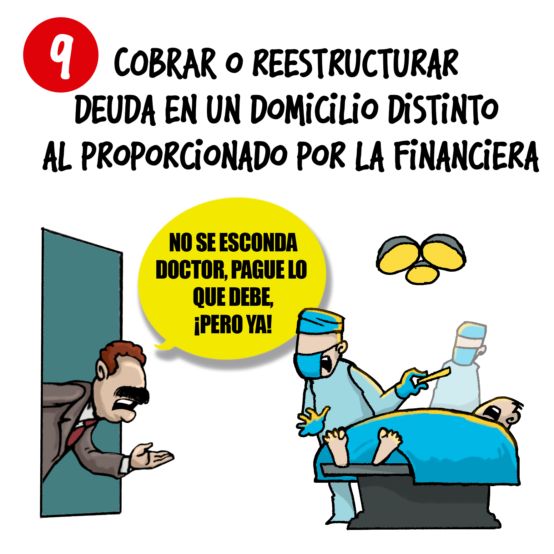 Las causas que dan lugar a una queja son: requerir el pago de una deuda que ya fue pagada con anterioridad; pedir el pago a un tercero que no tenga relación con la deuda; amenazar, ofender o intimidar al deudor, familiares o compañeros de trabajo; negarse a proporcionar el acuerdo ofrecido por escrito; comunicarse fuera del horario establecido; utilizar nombres que se asemejen al de instituciones públicas; utilizar números de teléfono ocultos o privados que imposibiliten su identificación, entre otras.