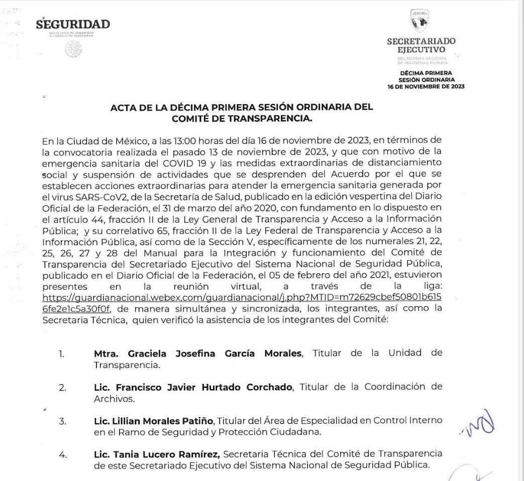 El Comité de Transparencia de la Secretaría de Seguridad y Protección Ciudadana (SSPC, que es el órgano del gobierno de López Obrador encargado de la seguridad pública y del registro y control de todos los cuerpos policíacos del país), en su XI sesión ordinaria de este año, declaró como RESERVADA por un periodo de cinco años, la información sobre el número de elementos policíacos en dos estados y en un municipio de Puebla.