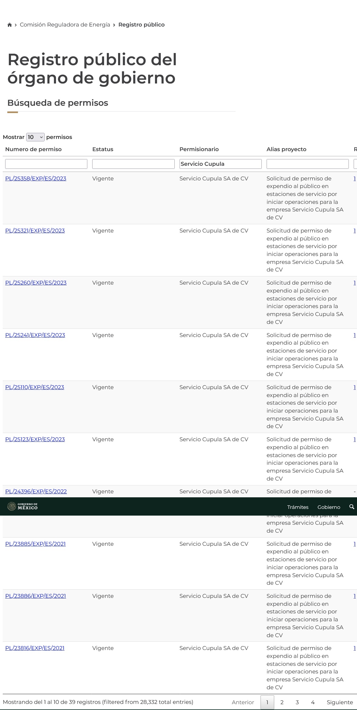 La información está en el Registro Público de la Comisión Reguladora de Energía (CRE) que es la instancia encargada de emitir los permisos para la operación de gasolinerías en México.