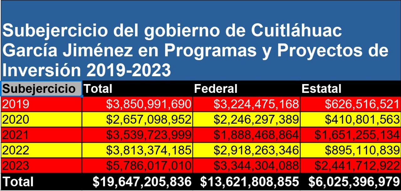 Paradójicamente, el año en que más alto fue el subejercicio fue durante el 2023, precisamente el año previo a las campañas electorales.
