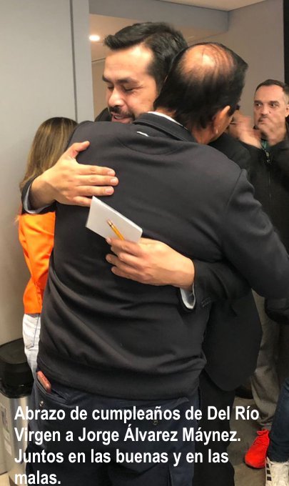 Cómo habla bien de una persona el hecho de que sea agradecida. Es el caso del cuasi senador suplente veracruzano José Manuel del Río Virgen, quien el lunes a temprana hora estuvo a darle su abrazo, por su cumpleaños, a su amigo y compañero de partido (Movimiento Ciudadano, MC), Jorge Álvarez Máynez.
