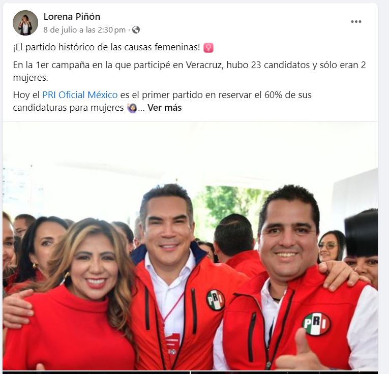 Vaya, para que no haya duda de la cercanía de Lorena Piñón con Alito, es que durante la asamblea para armar el tamal para que Alito se apropie del PRI, fue nombrada vicepresidenta nacional de la Mesa de Declaración de principios del partido, e incluso agradeció en redes sociales a "Alito", a quien se refirió como "mi Presidente".
