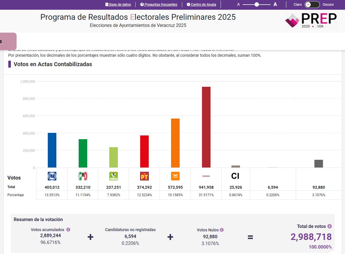 Aunque Morena gana la mayor parte de los ayuntamientos del estado de Veracruz y saca la votación más elevada, los resultados de las elecciones de éste domingo 1 de junio significan una caída para el partido en el poder.