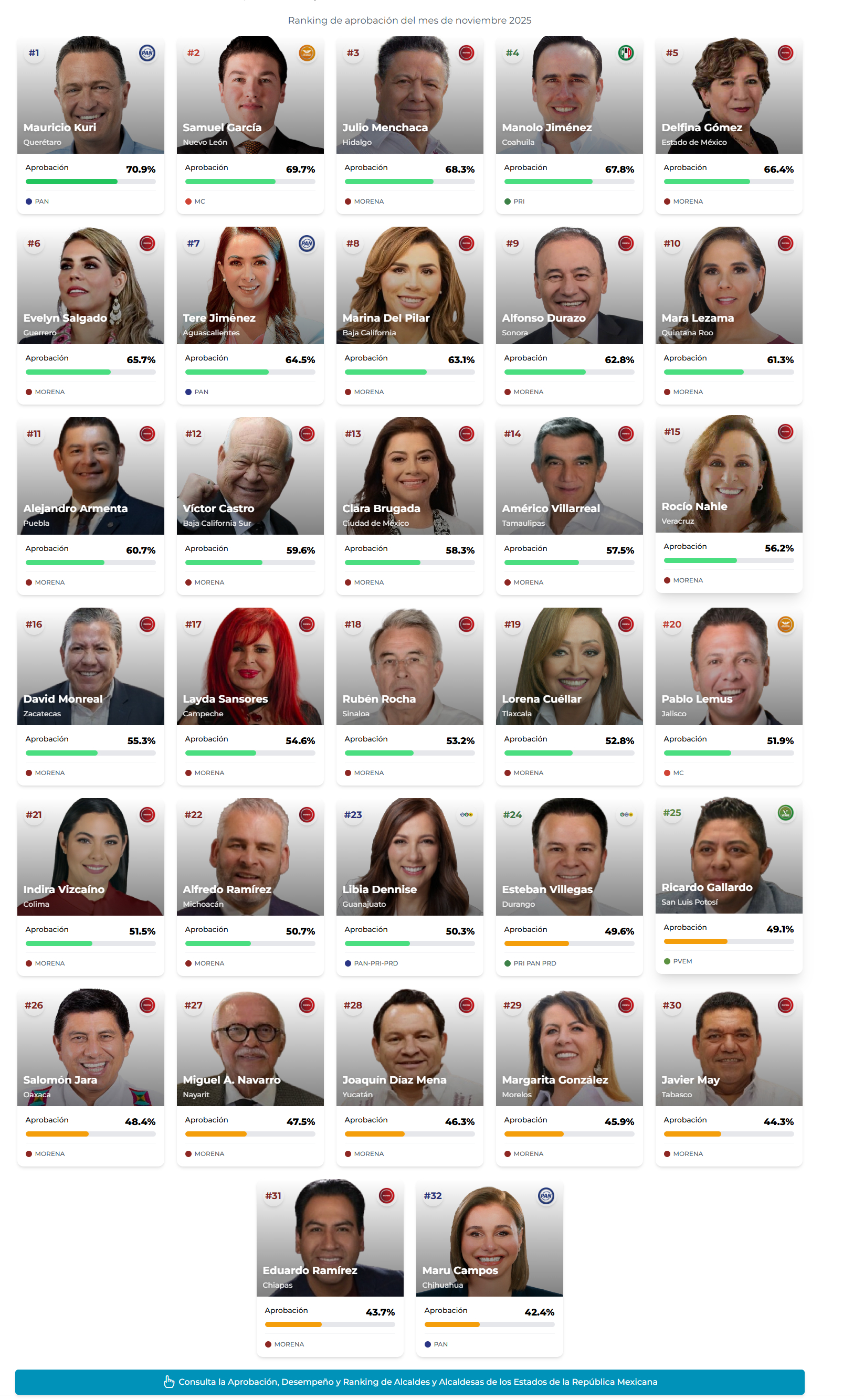 Sin embargo —y aquí está el punto medular— el hecho de que su aprobación haya caído a poco de cruzar el umbral de 50 % abre interrogantes. Cuando más de la mitad de la población aprueba, no significa automáticamente respaldo entusiasta. El piso de aprobación empieza a parecer más un colchón frágil que una plataforma sólida. En una entidad con retos históricos de desigualdad, inseguridad y rezago, una gestión que no logre consolidar avances tangibles puede pagar caro la oscilación en la percepción social.