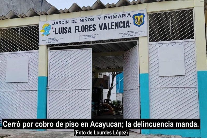 La mañana del lunes amanecimos con la noticia de impacto nacional, publicada en el diario Excelsior en forma destacada, en la que su corresponsal en Veracruz, Lourdes López (nuestra compañera, conocida como Lulú reportera) daba cuenta de que en Acayucan el Jardín de Niños y Primaria “Luisa Flores Valencia” cerraba a mitad del ciclo escolar por la amenaza de criminales que exigían “cuotas” o cobro de piso a la dirección del plantel.