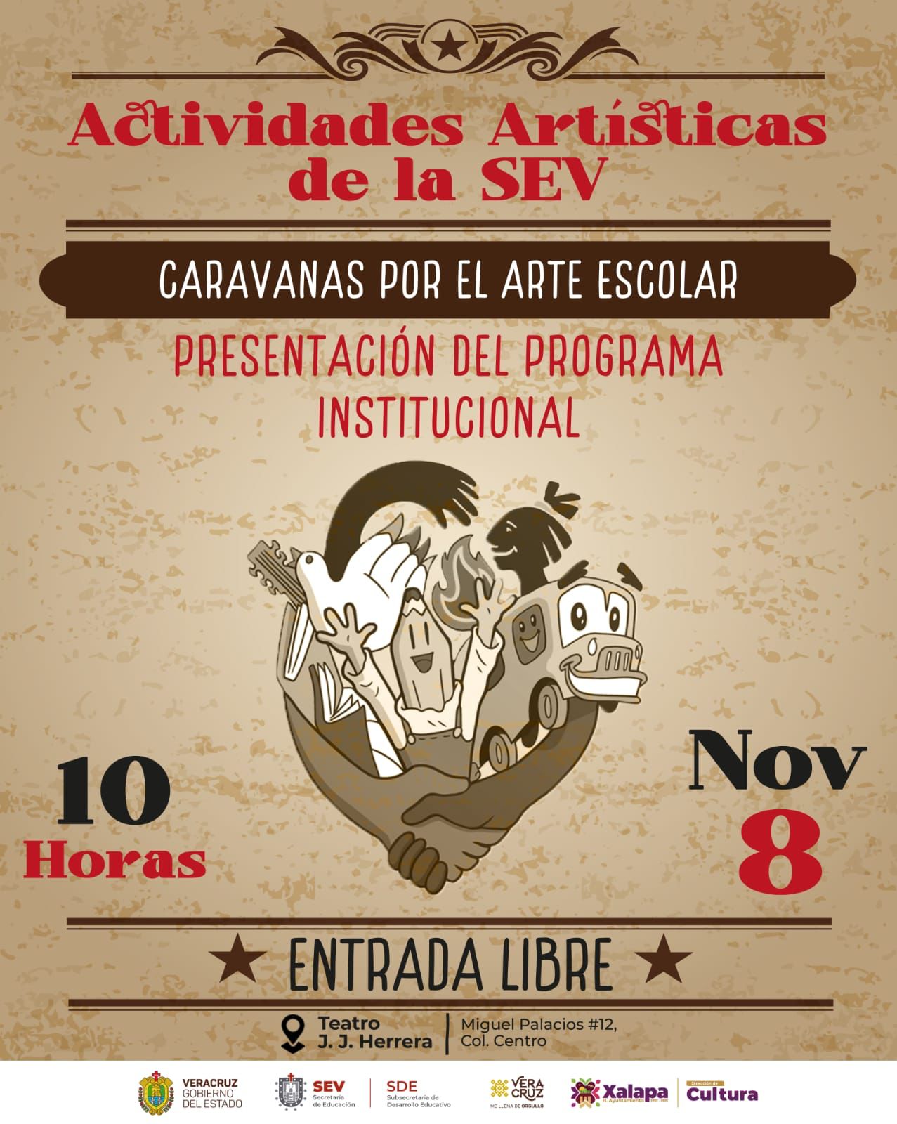 Las actividades arrancan con la Muestra de Actividades Artisticas de la SEV 2022, teniendo como sede el Teatro JJ Herrera. El lunes 7 a las 11:00 horas, se realizará la Muestra de Cortometrajes de la Dirección de Actividades Artísticas y Culturales, el martes 8 a las 11:00 horas, la compañía de teatro “Tercera llamada”, presentará la obra Monstruo y el miércoles 9 a las 11:00 horas, el grupo Teponaztle, ofrecerá un concierto didáctico, para finalizar las actividades el jueves 11 a las 11:00 horas con la obra VIH (VO) 2.0, de la compañía de teatro “Cubo”.