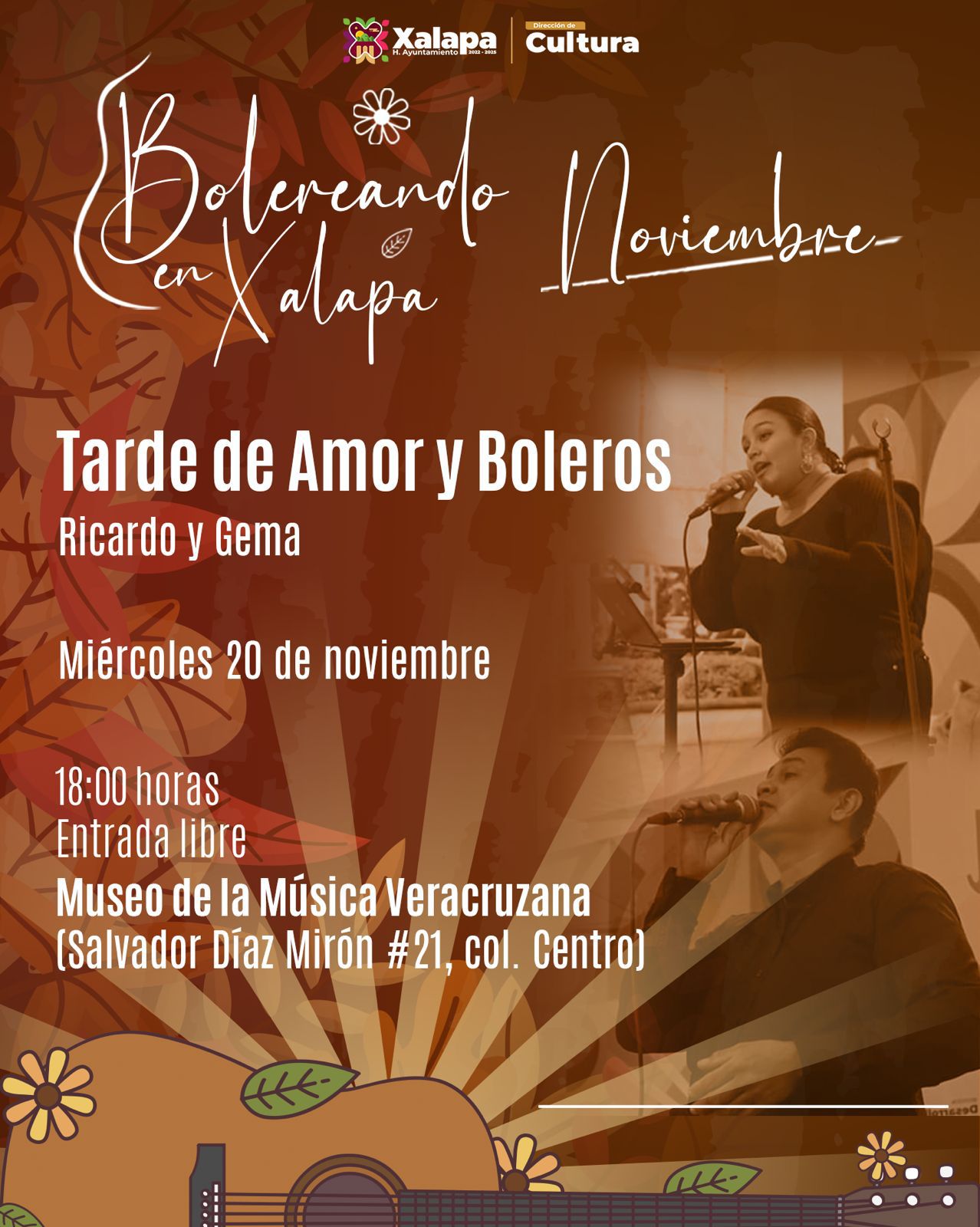 El miércoles 20 de noviembre a las 15:00 horas en el CRX se llevará a cabo la función a beneficio de tu escuela “Jeicy, Jeibib y Jeremías te llevan al teatro”, a las 18:00 horas en el Museo de la Música Veracruzana, Ricardo y Gema ofrecerá un “Tarde de amor y bolero”, y a las 19:00 horas se exhibirá la película “Mamá de Xun Sero” y el cortometraje “Flores de la Llanura” de Mariana Xochiquétzal Rivera.