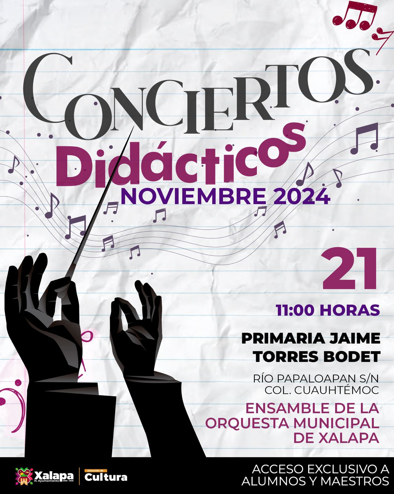 El jueves 21 de noviembre a las 11:00 horas, el Ensamble de la Orquesta Municipal de Xalapa ofrecerá un concierto didáctico en la Escuela Primaria “Jaime Torres Bodet”; mientras que a las 17:00 horas, Ricardo y Gema amenizarán las “Tardes de Xallitic” y en paralelo, Ricardo Ravelo presentará su libro “El amo de Jalisco” en el CRX, mismo lugar donde a las 19:00 horas en el CRX, se proyectará el filme “Cidade de Homens” de Paulo Morelli como parte del Ciclo de Cine Brasileño. Igualmente, a las 18:00 horas en el Museo de la Música Veracruzana, jóvenes pianistas ofrecerá un recital.