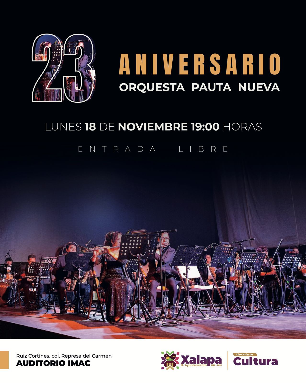 Asimismo, este lunes 18 de noviembre a las 19:00 horas la Orquesta Pauta Nueva celebrarán su 23 aniversario en el Auditorio IMAC, y a la misma hora en el Teatro JJ Herrera se llevará a cabo el MEF 2021 Danza Contemporánea. Este día y el martes 19 de 13:00 a 15:00 horas se impartirá el Taller de Introductorio de Cerámica. Y el 19 a las 18:00 horas en el Centro Recreativo Xalapeño (CRX) se proyectarán la película “Nos hicieron noche” de Antonio Hernández y en el Museo Casa Xalapa, el maestro Vicente Espino Jara ofrecerá la charla conferencia “La magia de un barrio”; y a las 20:00 horas, esta misma orquesta se presentará en la Iglesia de San José.
