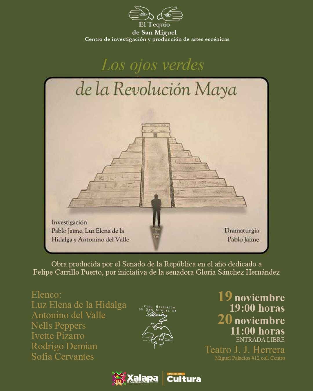 Por otro lado, este 19 de noviembre a las 19:00 horas y el 20 a las 11:00 horas en el Teatro JJ Herrera, se presentará la obra “Los ojos verdes de la revolución maya”, producida por el Senado de la República en honor a Felipe Carrillo Puerto. También el sábado 23 de noviembre a las 17:00 en la Plaza Lerdo y Parque Juárez, y a las 18:00 horas en el Teatro JJ Herrera se realizará el espectáculo musical “Canta con la tuna de Colombia”, en el que participarán las agrupaciones de la Universidad Central, Universitaria de Duitama y Femenil de la UV.